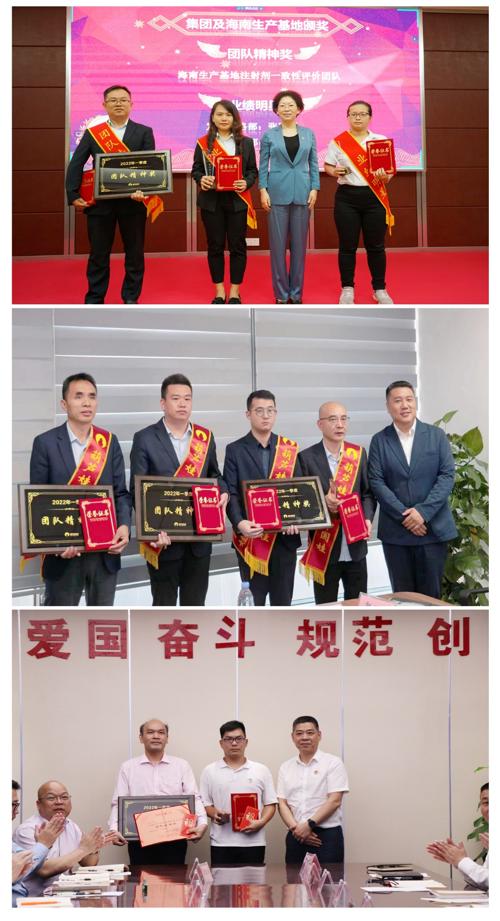 为了表彰在2022年一季度“深化变革,赢得开门红”工作中“超额完成计划、超出本职工作或超越组织预期”的先进集体和优秀个人,会议期间还举行了尊龙药业集团2022年一季度“开门红”表彰颁奖仪式。营销中心葫芦世家事业部湖南区域主管黄子杰等12人荣获业绩明星奖,葫芦世家事业部等5个集体荣获团队精神奖。