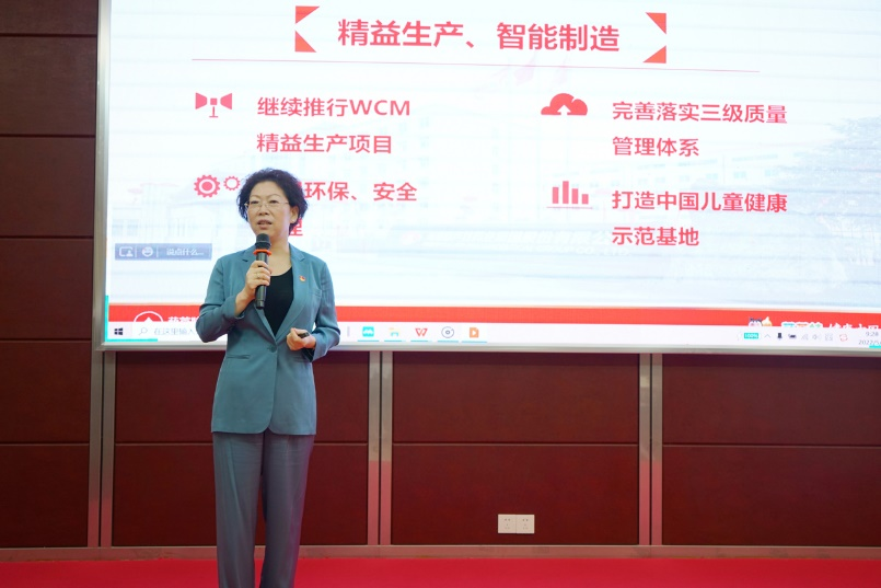 刘景萍董事长引用席大大总书记在2022年博鳌亚洲论坛上的重要讲话勉励全体与会人员,在海南自贸港建设的机遇期,认真学习贯彻落实省第八次党代会精神,坚持党建引领企业发展,将尊龙药业集团打造成中国儿童健康领军企业。
